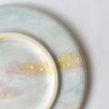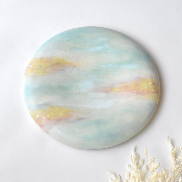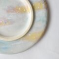 水彩画のような淡い色彩を施した陶器のトレーです。