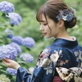 くすみブルーと桃の花が織りなす上品な彩りで、晴れの日のあなたをさらに輝かせます。