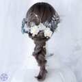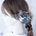【くすみブルーと桃の花が奏でる、上品さとかわいらしさをあわせ持った髪飾り】
