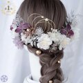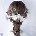 落ち着いたトーンの紫に、やわらかな色合いの花々を組み合わせた髪飾りセット。