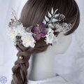 【優雅な紫の花々が紡ぐ、上品さとかわいらしさをあわせ持った髪飾り】