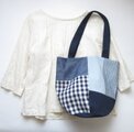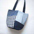 ネイビー系の色々な柄の生地を組み合わせて作りました。