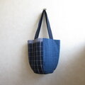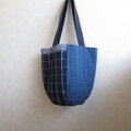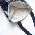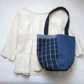 持ち手と底の布はネイビーでワッシャー加工されたコットンリネンを使いました。