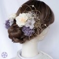 繊細な桜と透明感あふれるミスティーラベンダーのお花を贅沢にあしらい、優雅で気品あふれる髪飾りに仕上げました。