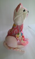 着物地のピンク系の端切れを使いぬいぐるみを作ってみました。