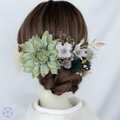 くすみグリーンとモスグリーンの髪飾り No.GM3 成人式 卒業式 結婚式 成人式髪飾り 卒業式髪飾り ヘアアクセサリー