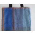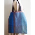 少し光沢のある麻糸を用い、手織りで製作した生地をおもて面に製作したトートバッグです。