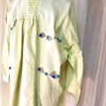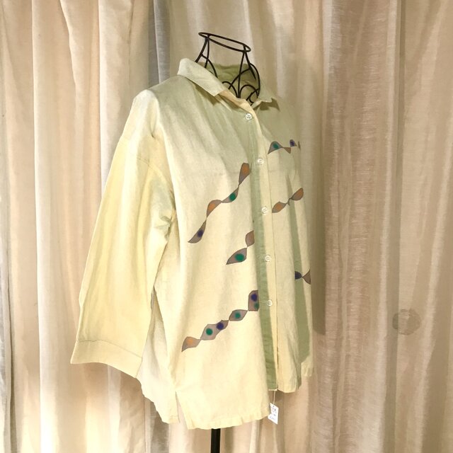 綿100%生地のブラウスに、雲の形をデザインして、ロウケツ染めの技法を使って、染めました。