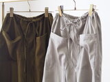 サラッと滑らかな穿き心地が人気のコットンサテンで作った、裾にピンタックが入ったパンツ。新作です。