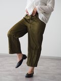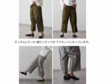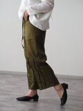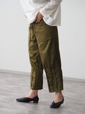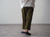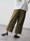 前ポケット、裾ピンタックパンツ/オリーブ