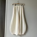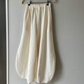 ふんわりとしたやわらかなフォルムが優雅なロングスカートにも見える、フェミニンな印象のパンツです。