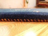 ペルシャ絨毯の青色はオアシスを表しています。ギャベの青色は夜空などを表しております。
