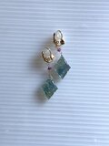 フローライトの間にマザーオブパールを挟み込んだ、幻想的な色合いのトリプレットストーンと、小粒のピンクトルマリンのイヤリングです。