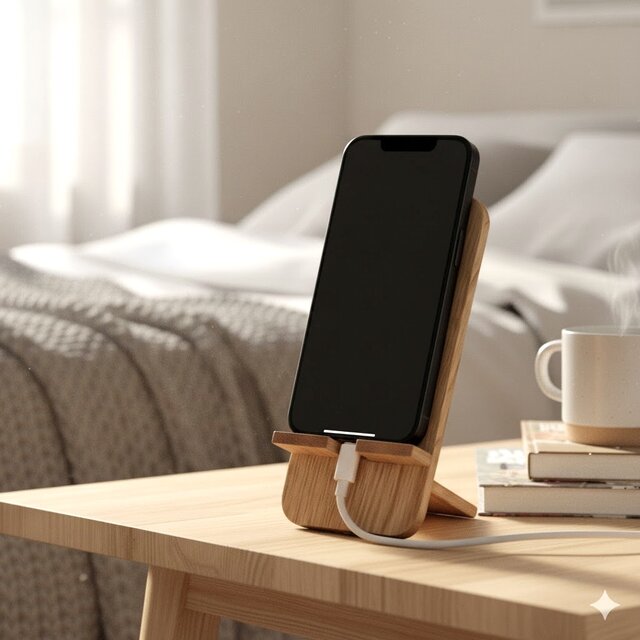 ナラ材を使用し、シンプルながら使い勝手の良さを追求したスマートフォンスタンドです。