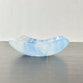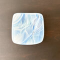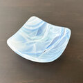 半透明の白と透明な青と緑が重なり合う模様の豆鉢です。