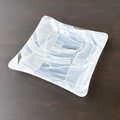 半透明の白と透明な青が重なり合う模様の小皿です。