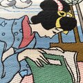 素材は美術名画織物です。比較的丈夫で色褪せし難い為、美しい絵柄を末永くお楽しみ頂けます。織物(繊維)は摩擦や引っかけに繊細な素材です。御朱印帳袋等を使用して御朱印帳を保護して頂き、本作品をより美しい状態で保って頂く事をおすすめ致します。