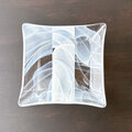 半透明の白と透明な青と紺色が重なり合う模様の小皿です。