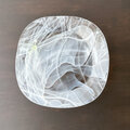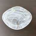 半透明の白と透明な黄緑色が重なり合う模様の皿です。
