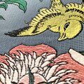 色彩設計においては、表面の沈静な藍と華やかな花鳥、裏面の明快な黄と銀との対比が印象的で、感情にまで響く美しさをもつ作品に仕上がりました。