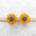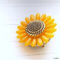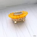 みかんの果肉色に似たオレンジ寄りのイエローのチェコダガービーズで表現したひまわり。