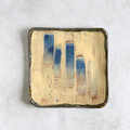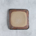 赤土にクリーム色の化粧泥を刷毛で手塗りし、その上から藍色の呉須を使い、筆の線の動きで表現した色四角絵皿になります。