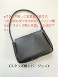 どんなファッションでも合わせやすいシンプルさと、肩掛けしていて邪魔にならないコンパクトさ、そしてありそうで無い一粒スタッズ(バッグの両面に一粒ずつ)は当店オリジナルのデザインです。