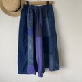 古布切替パッチワークワイドサルエルパンツ 一点物藍系F