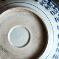 見込みに牡丹◆味のあるお品物。伊万里 ベロ藍牡丹文印判大鉢 碗 骨董/antiques 古道具 明治期