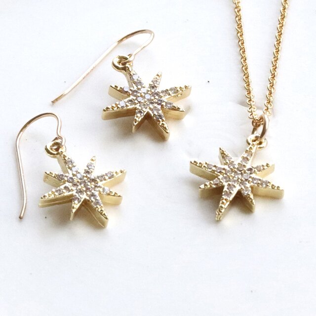 夜空に輝く、一番星 ピアス(イヤリング)&ネックレス セット 14Kgf アレルギー対応