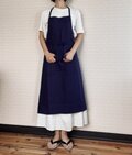 深みのある紺色が、落ち着いた印象を与えてくれる麻のエプロンです。
