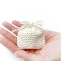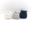 隙間のできにくい編み模様で編んだ、コットンの柔らかな巾着です。