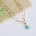 天然石1粒ターコイズのステンレス製2連ネックレス。