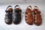 【受注製作】メンズサンダルシューズ 編み込み 透かし サイドスルー 手製牛革レザー LK030