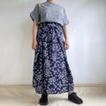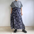 【1点もの】四角布のスカート -浴衣地 紺に鼓(ヴィンテージ) SK644