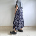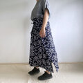 【1点もの】四角布のスカート -シルクウールの着物地 紫に緑の花模様(ヴィンテージ) SK27イメージ通りの素敵な生地でした。 デザインも素敵で、ぽっこりお腹をカバーしてスッキリ見えます。 とっても嬉しいです。 ありがとうございました!