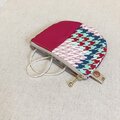 ピンク系の幾何模様と千鳥格子を両面に使っています。