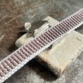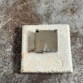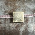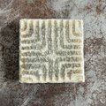 線刻紋の白土に灰志野釉をかけた四角い陶の帯留に