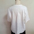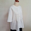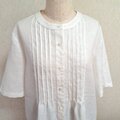 リネン ピンタックブラウス バンドカラー ホワイト 白 五分袖 Lサイズ