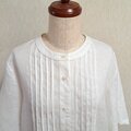 リネン100%の生地でピンタックのバンドカラーブラウスを作りました。
