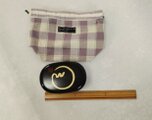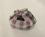 この「藤色チェックの巾着袋」は、藤色のチェックとストライプが絶妙に組み合わさった、見た目にも楽しいハンドメイド作品です。コットン生地ならではの柔らかさが手に馴染み、毎日持ち歩きたくなる心地よさを提供してくれます。