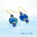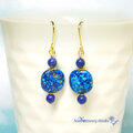 ブルーが響きあう、ラピスラズリとスクエアビーズのピアスです。