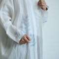 透明感のあるホワイトリネンに藍色の濃淡でシダを描きました。