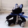 こぎん刺しのテディベアS 総刺しこぎんクマ 星に願いを。