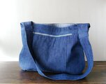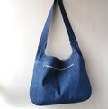 【一点物】デニムのショルダーバッグ (L) ブルー