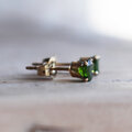 森林の奥深くを思わせる濃密なグリーンが特徴のクロムダイオプサイドをシンプルなスタッドピアスにしました。