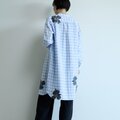 少し肩が落ちたデザインのチュニック丈シャツです