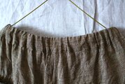 ウエストは、上タックゴム1本の総ゴム仕様(ゴム替え口あり)で、真ん中内側にcottonテープひもを通しています。