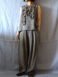 【受注制作】キャメル/グレンチェックリネン Bigワイドパンツ