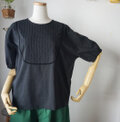 いつも感心するのは、どの作品もデザインが可愛く着こごち満点であり、襟ぐりの締め付け感は全くないのは言うまでもなく、襟まわりの開きの具合の可愛さ、上品さのバランスが絶妙に素晴らしいところです。仕立てに技ありですね!